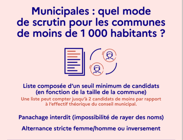 Pour favoriser le respect de la parité dans les conseils municipaux et répondre à la crise de l’engagement local, la loi étend aux communes de moins de 1000 habitants le mode de scrutin de liste paritaire. Cette réforme s'applique dès les prochaines élections municipales de mars 2026.